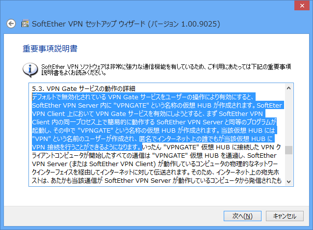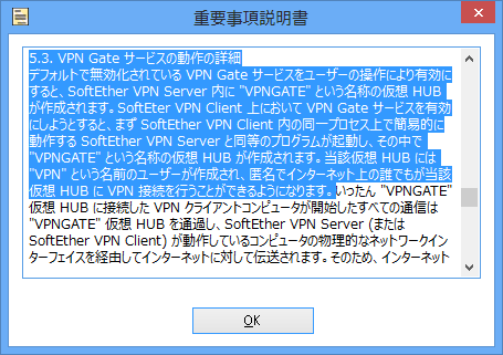 初めて VPN Gate クライアントを起動しようとすると、VPN Gate